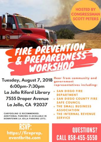 The Mt. Soledad neighborhood of La Jolla is considered an at-risk area for wildfire considering the vegetation, housing, single roadways, and more. Join Rep. Scott Peters and hear from local organizations and government representatives, who will share resources that empower the La Jolla community to create an evacuation plan, as other communities have, in advance of fall wildfire season.