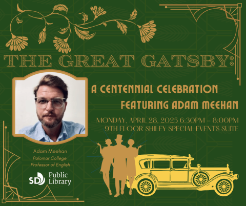 So, how did it go from failure to classic? Join us to celebrate the Gatsby centennial with a public presentation by Palomar College English professor Adam Meehan, who will talk about why the book is as American as apple pie (did we mention the sordid love affairs, rich criminals, and shocking killings?) and why it still resonates today.