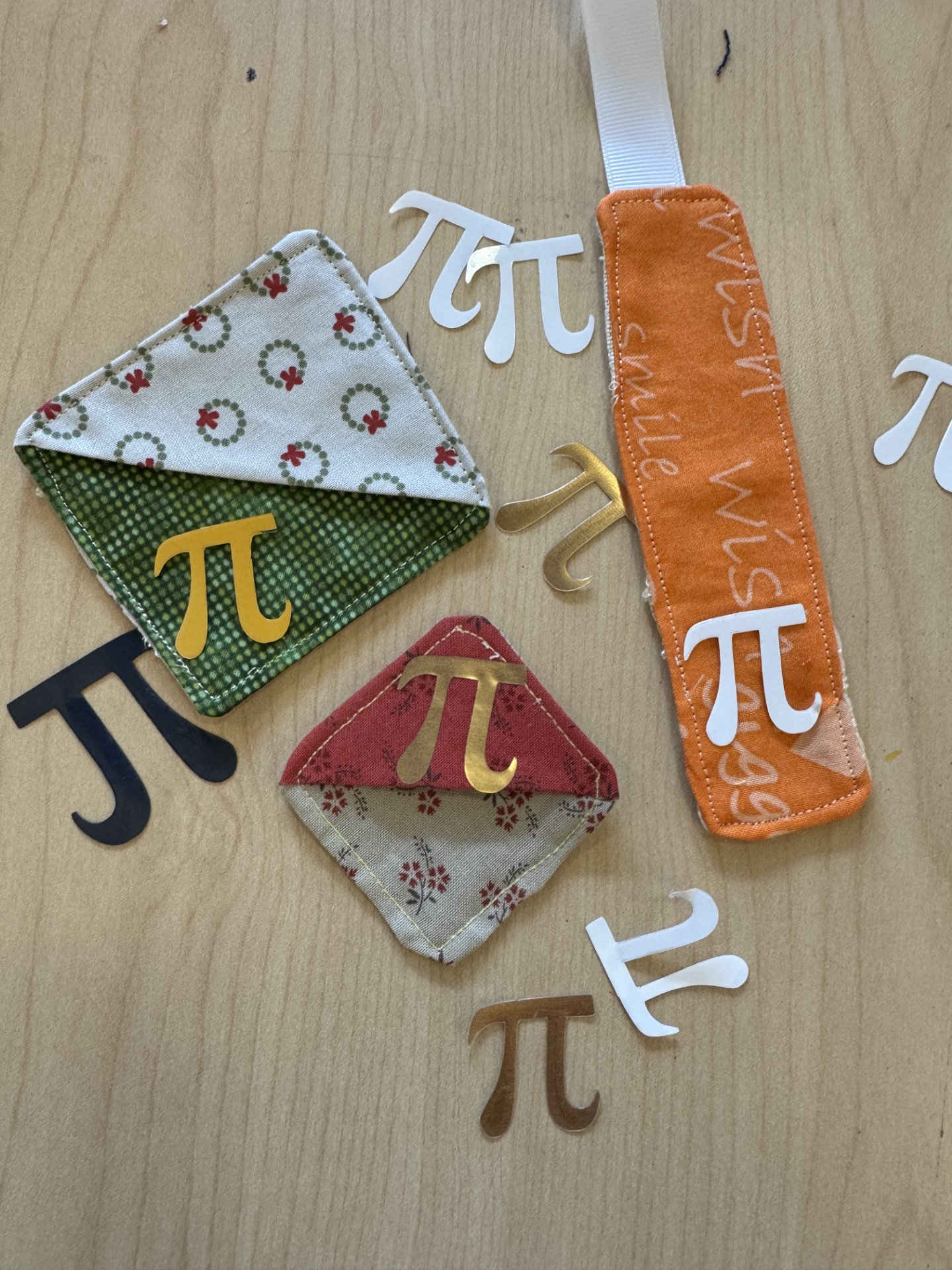 In honor of Pi Day (3/14), make your bookmark irrational! Iron on a Pi symbol to your finished bookmark to celebrate the mathematical constant.