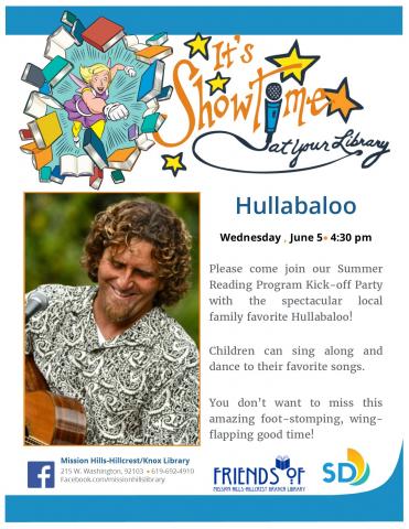 Please come join our Summer Reading Program Kick-off Party with the spectacular local family favorite Hullabaloo!