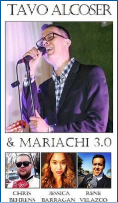 Tavo Alcoser & Mariachi 3.0 celebrate the diversity of popular border music through an eclectic mix of genres including Mexican Folk, Tex-Mex, Latin Rock and Reggae-Cumbia. Now touring nationally as lead vocalist for the band Jarabe Mexicano, San Diego-native Tavo Alcoser exhilarates with soaring vocals and a soulful delivery that have gained him the attention and admiration of audiences across the country.